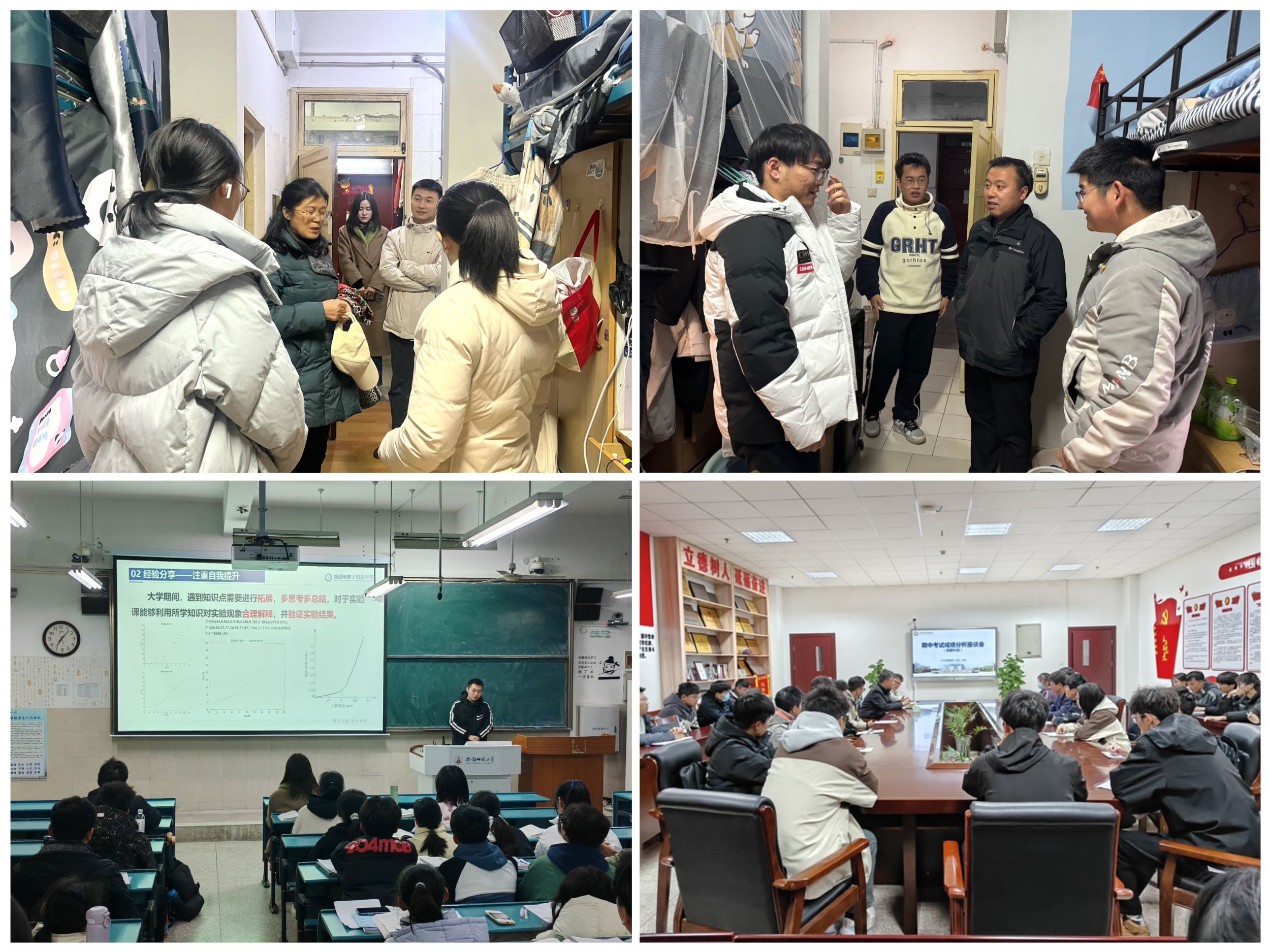 领导班子成员、全体专兼职辅导员深入学生宿舍,就期末季学习、思想、生活等方面的问题与学生进行了亲切交流,叮嘱大家合理安排时间,做好复习计划,注意用电安全。辅导员认真梳理摸排学困生、学业预警名单,逐个谈心谈话,遴选高年级成绩优秀的学生骨干组成朋辈讲学团发挥帮扶及模范作用,并就缓解紧张情绪、有效复习备考、考试注意事项等方面做好心理疏导和提醒,鼓励大家以积极心态认真备考、诚信应考。