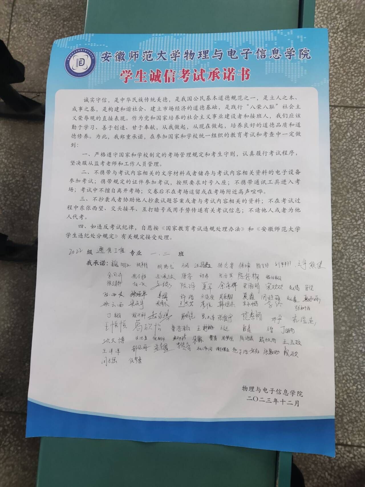 各班级带领学生认真学习《安徽师范大学学生违纪处分规定(修订)》、《安徽师范大学普通全日制本科毕业生学士学位授予办法(修订)》的相关规定,现场组织全体学生阅读并签署诚信考试承诺书,同学们对个人、班级、免费足球直播app
