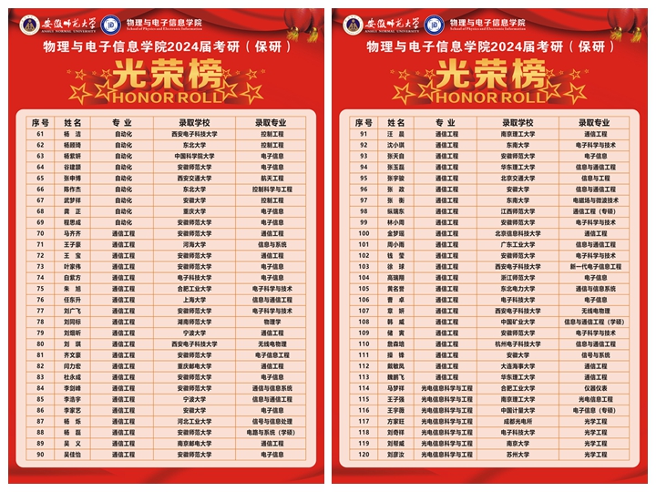 2024届本科毕业生共计480人,最终207人被浙江大学、南京大学、中国科学技术大学、电子科技大学、同济大学、哈尔滨工业大学、四川大学、华中科技大学、北京师范大学、华东师范大学等知名高校录取,升学率达43.12%。其中93.35%被录取到本校和“双一流”高校深造,考研升学质量较往年有较大提升。