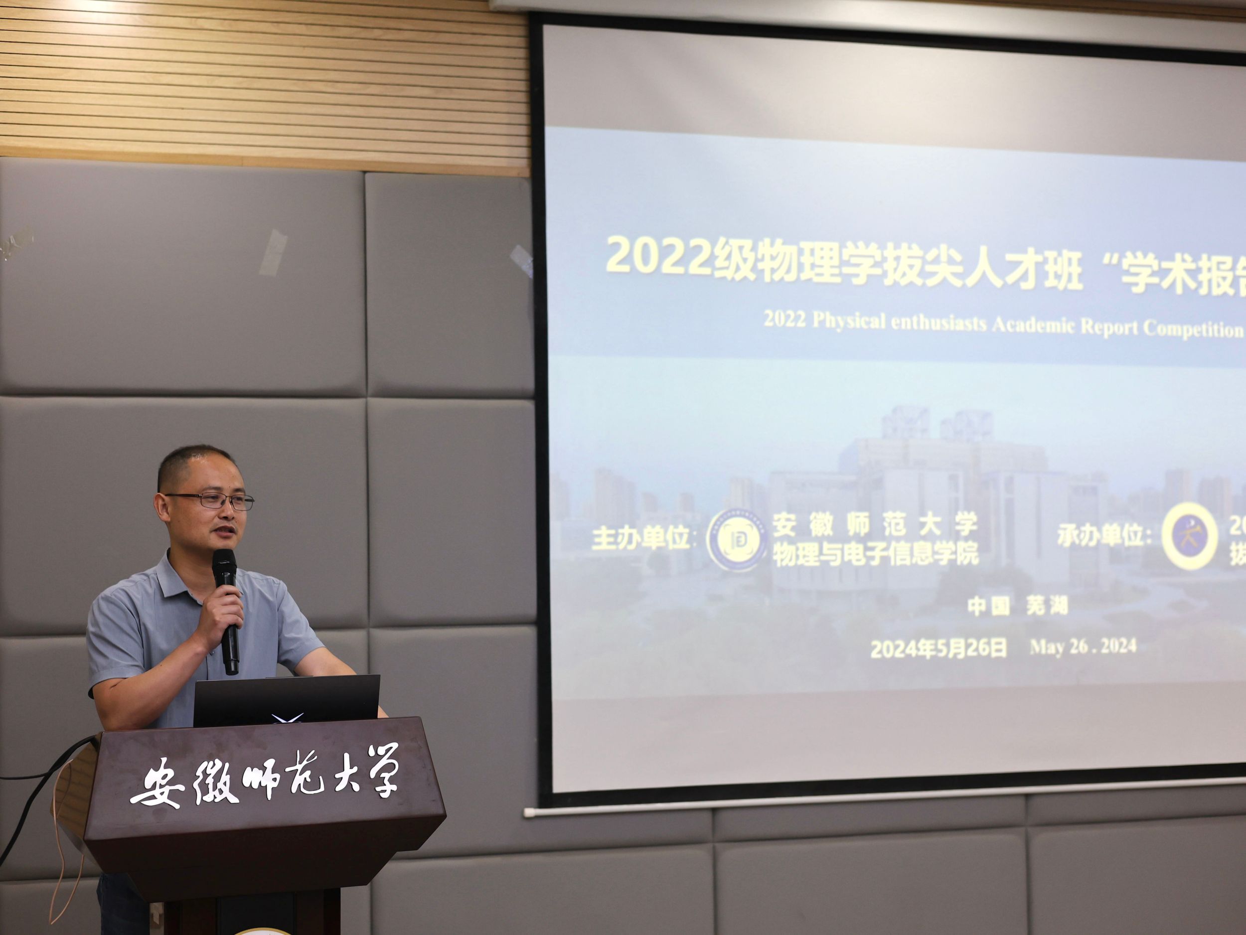 汇报完毕,物理学拔尖人才班班主任盛晓伟老师进行总结,他对各位老师的支持表示感谢,并对同学们提出了更高的期许,希望这项比赛能有更多同学参与进来。同时也对同学们的日常学习给予要求,希望同学们能在日常学习生活中珍惜光阴,在专业课程学习上精益求精,更进一步。