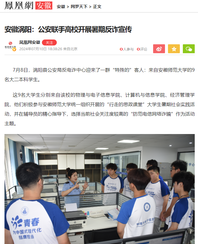 7月8日,涡阳县公安局反电诈中心迎来了一群“特殊的”客人:来自安徽师范大学的9名大二本科学生。