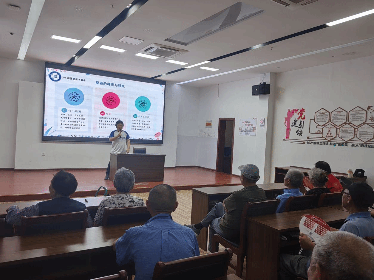 除了为居民提供免费的维修服务,志愿者们还在社区开展了系列科普讲座。他们结合日常生活实例,深入浅出地介绍了电能等常见能源的组成、应用以及节约能源的方法和重要性。考虑到社区居民的年龄层次,志愿者们还特意准备了生动有趣的PPT和互动环节,科普现场笑声连连。“原来我们日常生活中有这么多浪费能源的地方啊!”一位阿姨听完讲座后感慨道。而另一位大爷则兴奋地表示:“以后我要注意关灯关电,为环保出一份力。”