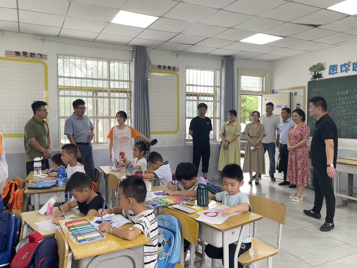 7月27日,免费足球直播app 院长吕建平、行政副院长张其芳、团委书记张津源、辅导员邹孝龙一行赴无为市泥汊镇日新村夹河小学看望慰问免费足球直播app “集爱科教行,共赴千方约”千方爱心学校支教团队师生,并在日新村会议室举行大学生社会实践基地揭牌仪式。无为市委常委、组织部长陈兆强,团无为市委书记姚文敏,泥汊镇党委书记黎平安、党委副书记俞韵文,日新村党总支书记柯成等出席揭牌仪式。