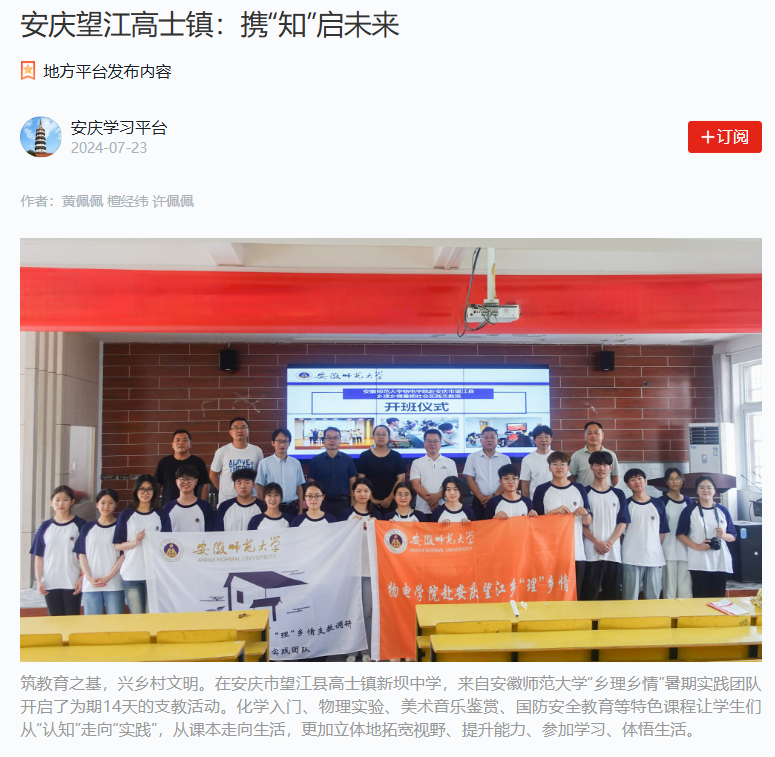 原报道阅读链接:【学习强国】安庆望江高士镇:携“知”启未来 (xuexi.cn)