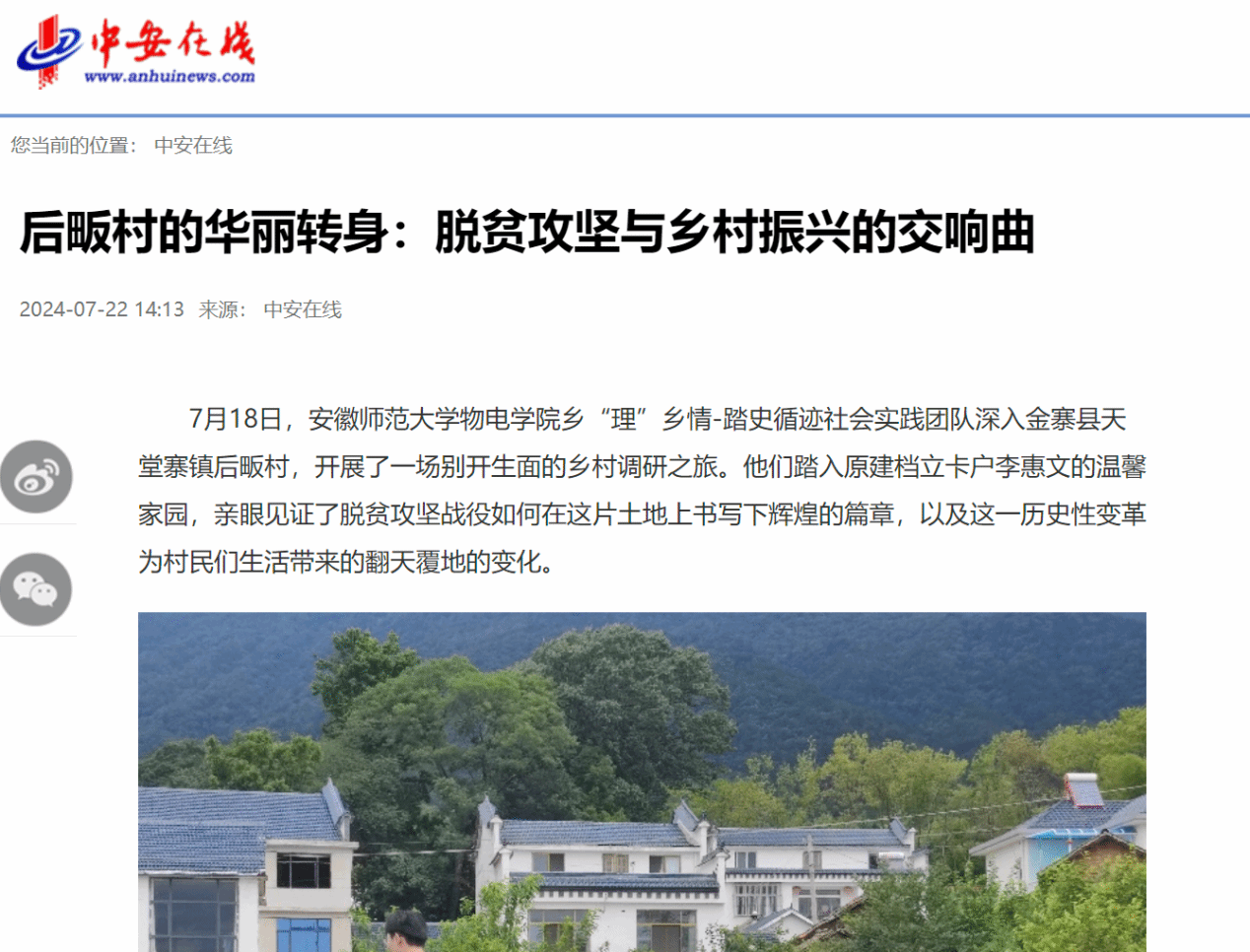 此次社会实践活动,让安徽师范大学的同学们深刻体会到了脱贫攻坚与乡村振兴战略对于农村地区发展的深远意义,同时也让他们对基层工作的艰辛与不易有了更加直观的感受。他们坚信,在党的坚强领导和政府的大力支持下,乡村振兴战略必将持续深入推进,为后畈村乃至更多乡村带来更加繁荣昌盛的明天,让每一位村民都能享受到幸福美好的生活。