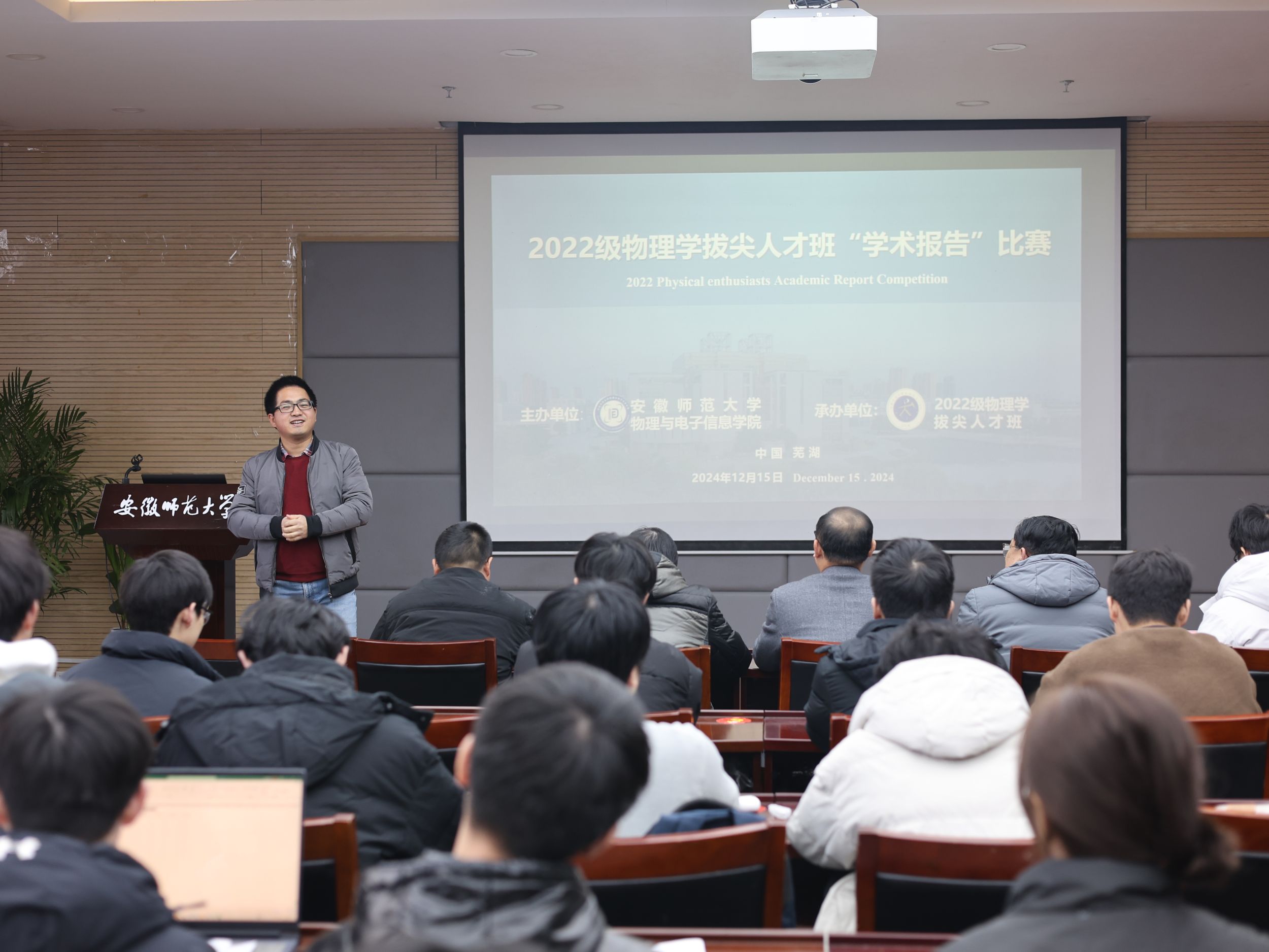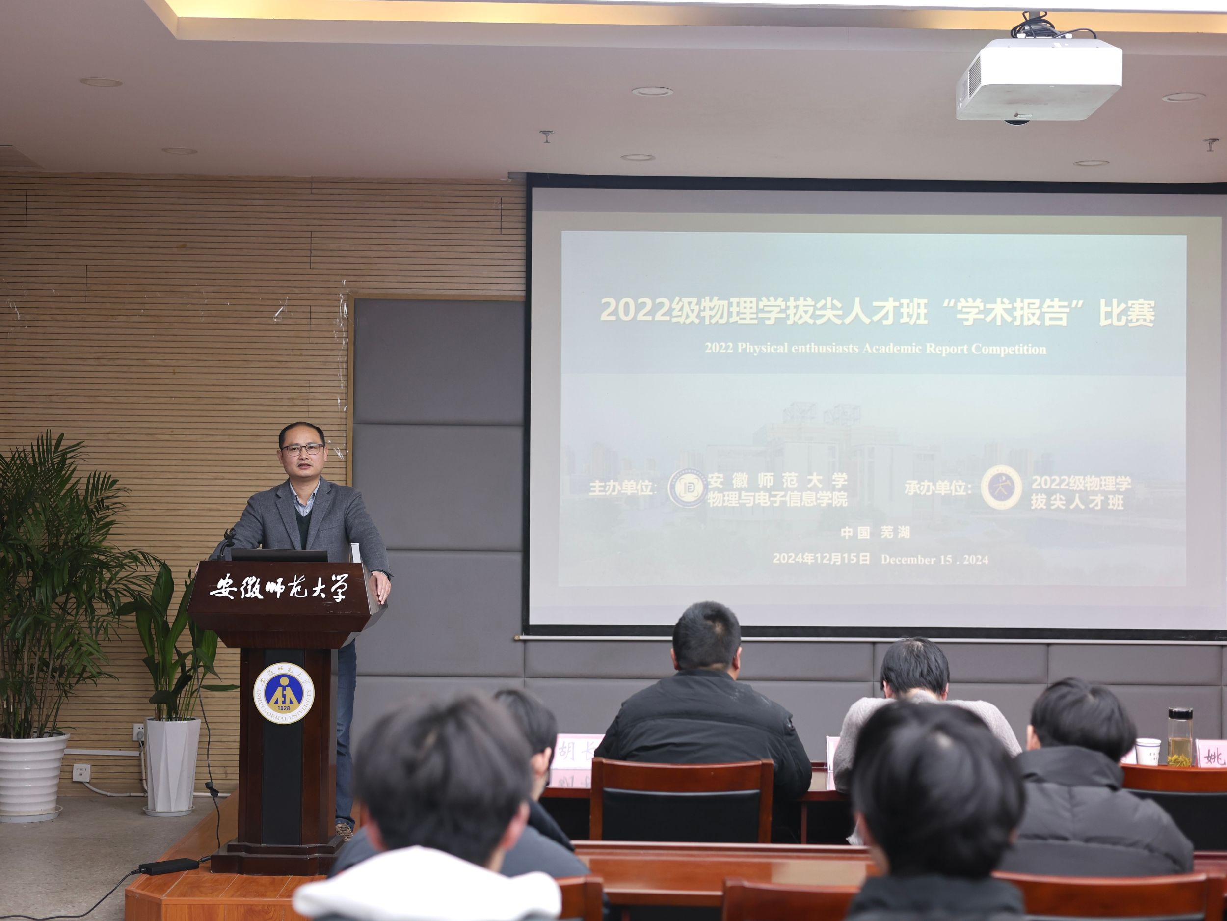 比赛开始前,2022级物理学拔尖人才班班主任汤宁宇向同学们表达了鼓励,期望同学们能够以本次比赛为契机,培养科研能力,锻炼科研思维,勇敢挑战自我,积极主动参与研究,持续进行科研工作。