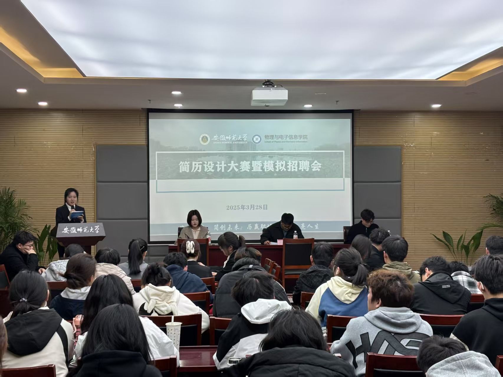 在物理楼304会议室成功举办简历设计大赛暨模拟招聘会。学生会指导教师邹孝龙、电子爱好者协会指导教师张月停、院学生会主席团成员聂小龙参加本次比赛并担任面试官和评委。决赛由学生会牛咏希主持。