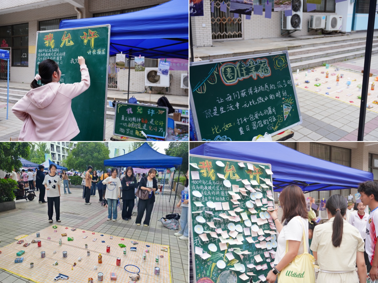 在学校心理健康中心的指导下,在二食堂广场开展了“我允许”“圈住幸福”趣味体验活动,旨在引导参与同学学会悦纳自我,并学会积极关注生活中的点滴幸福。活动吸引了众多同学驻足观看、排队体验。