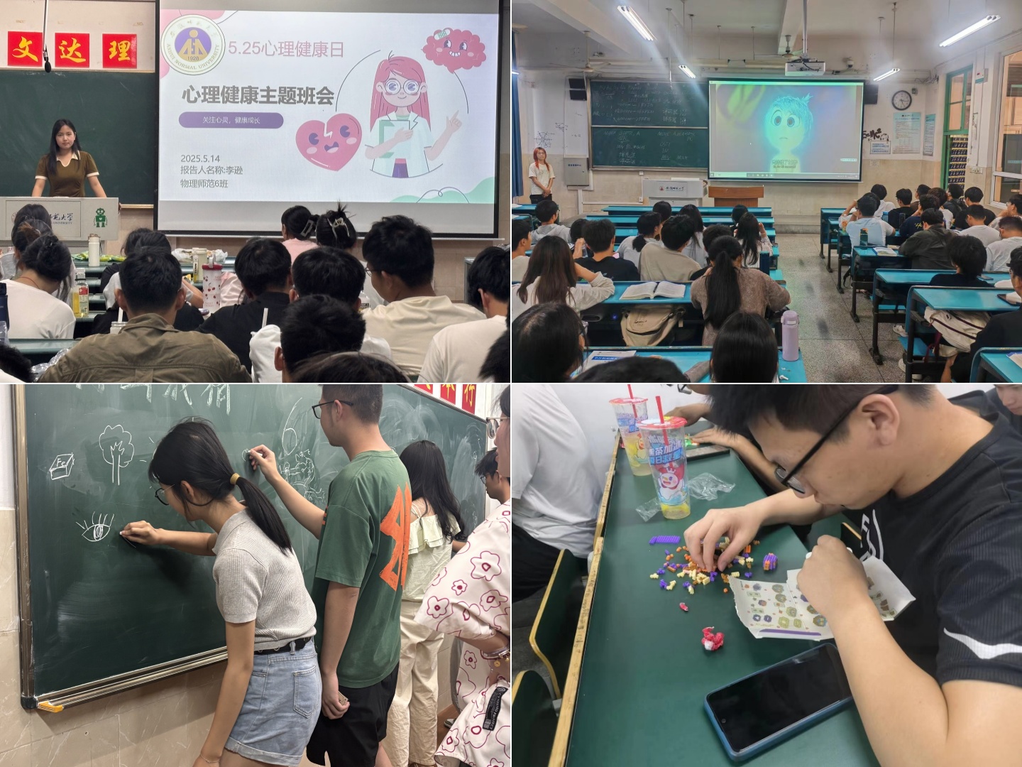 发展辅导站指导各班级积极召开心理健康月主题班会,科普心理健康基础概念、常见心理健康问题以及自我疏导方法,营造班级阳光氛围。此外,部分班级还组织趣味观影、“你画我猜”、“拼搭童年”等活动,舒缓同学们的学业压力,丰富校园生活。