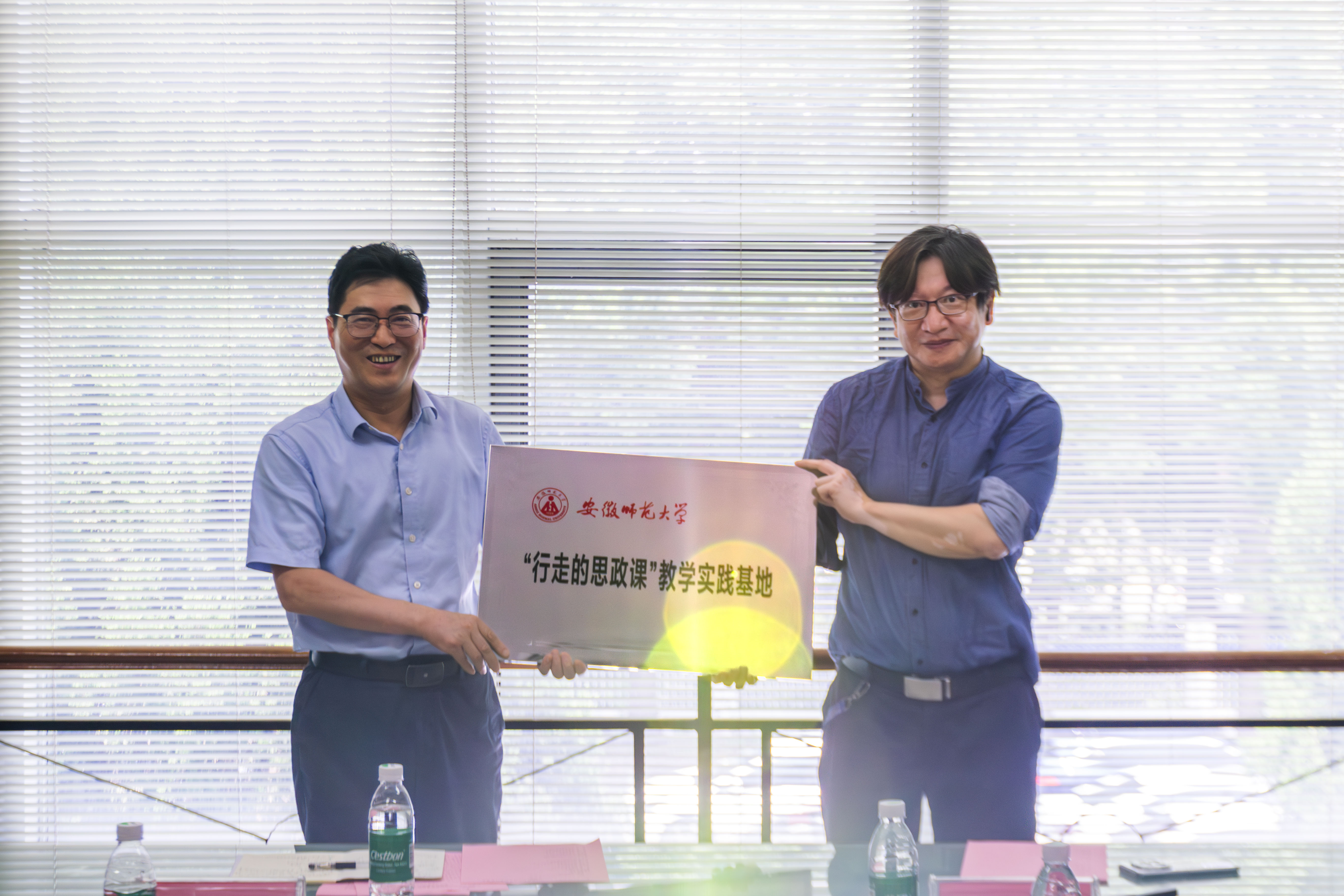 高峰听取了免费足球直播app “探知求实、‘企’航未来”企业见习实践团队师生的工作汇报,了解了团队的实践实训情况。高峰与陈湧共同为安徽师范大学“行走的思政课”教学实践基地揭牌。