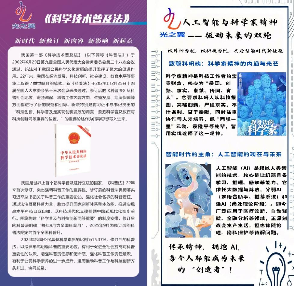 据悉,“光之翼”科普志愿服务队成立近一年来,已经开展十余场科普活动,受益达300多人次,后续团队还将走进社区、中小学校园开展形式多样的科普活动,通过常态化科普实践,助力全民科学素质提升,为科技强国建设贡献青春力量。