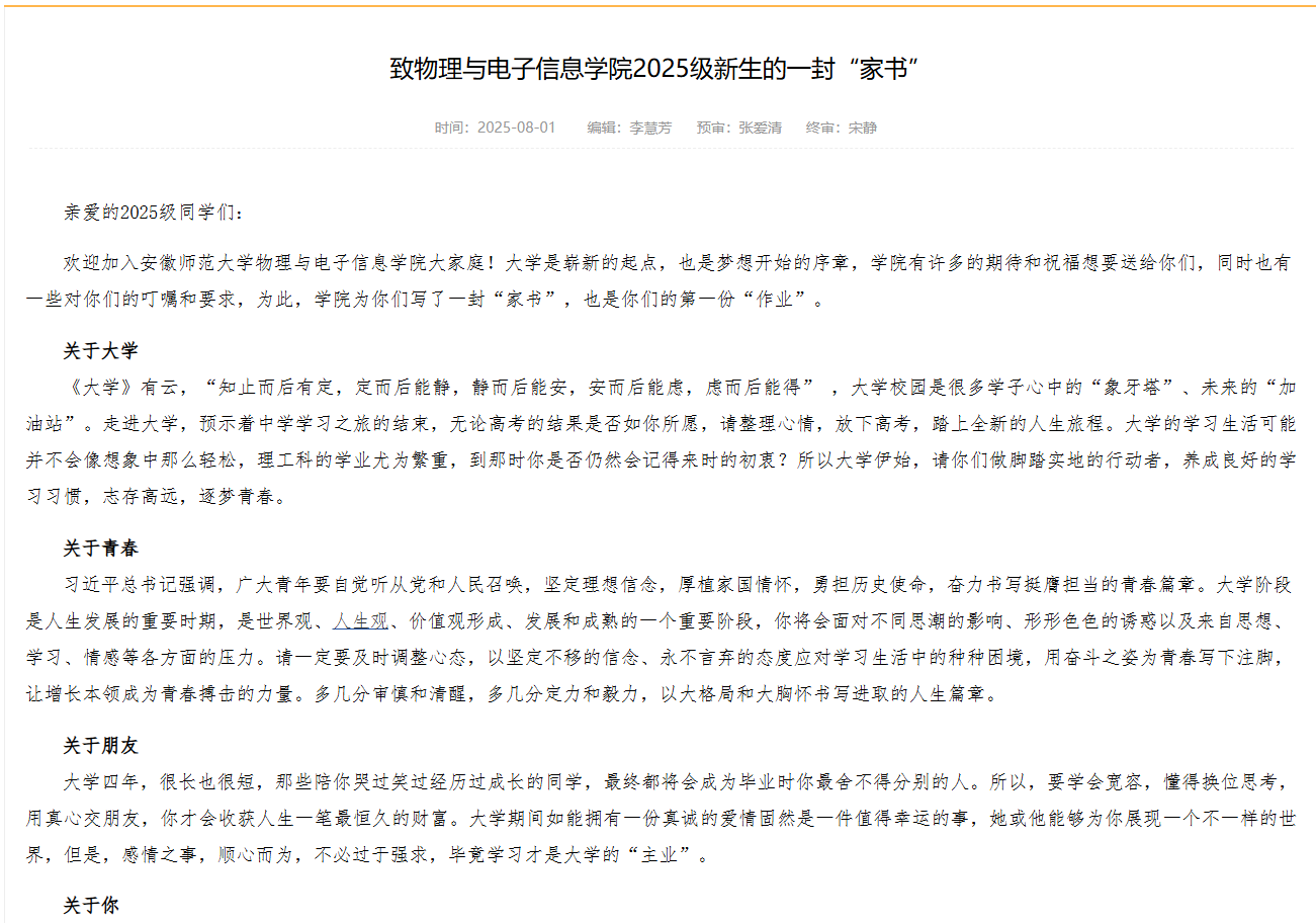 2025级新生的一封“家书”》随录取通知书送至学子手中,既含欢迎与祝福,更藏“大学认知早筑基”的深意。免费足球直播app