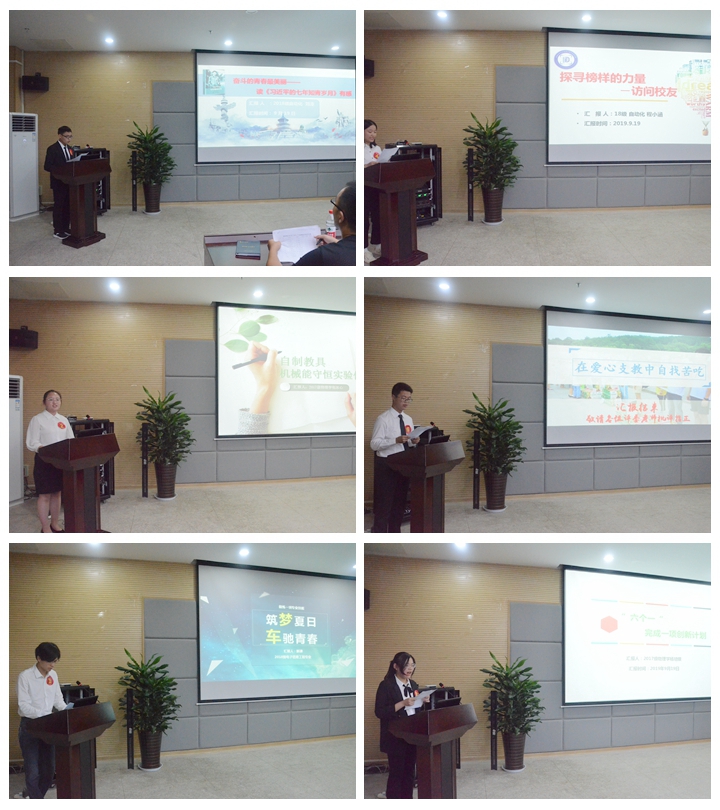 争得荣誉的竞赛精英;有把阅读当成一种习惯,在书海遨游、汲取养分,提升人文素养的理工科“书霸”;有感恩父母、回报母校,贡献青春力量的孝亲模范;有矢志教育、自制教具、创设课堂的师范标兵。六个方面的事迹各有特色,但无不诠释着师大学子自强不息、积极进取、知行合一的优良品质。现场气氛热烈,掌声不断。