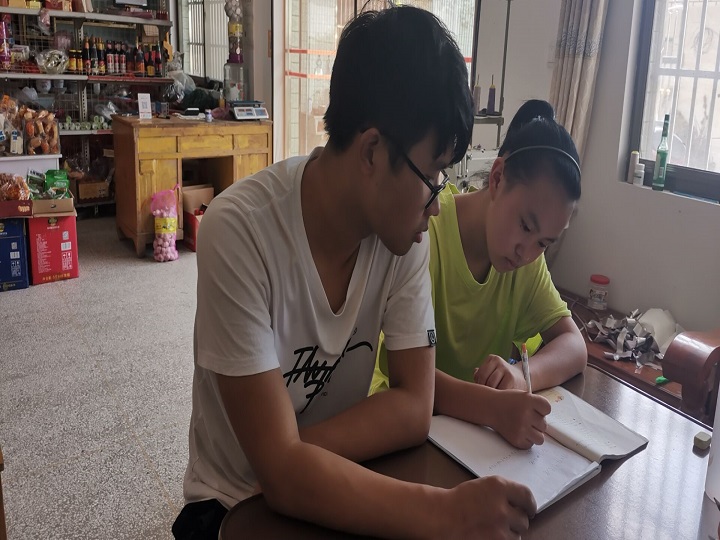 与此同时,实践队员许可在自家乡村也开展起了辅导留守儿童的工作。据了解,他的家乡有一户家庭由于一些原因导致家庭经济状况变得很差,现在孩子君君就寄宿在爷爷奶奶家里。由于爷爷奶奶文化水平并不高,自己在家也没有老师指导功课,队员主动上门找到了她,跟她说明了自己的实践活动主旨。一番沟通后,君君很开心我们队员能够帮助她辅导功课,并且说明了自己的弱势学科希望队员能够多多指教她,于是从7.31号开始,队员每天会针对性地辅导她功课。在辅导的同时,队员也多多关注了孩子的心理动态,队员感受到经过家庭的一次天翻地覆的变化,君君的性格有些变化,不再像以前那样子开朗了,队员决心在辅导君君功课期间多于孩子交流,尽可能的让她的心态好起来,让这孩子的学习和心理都能够健康地发展。