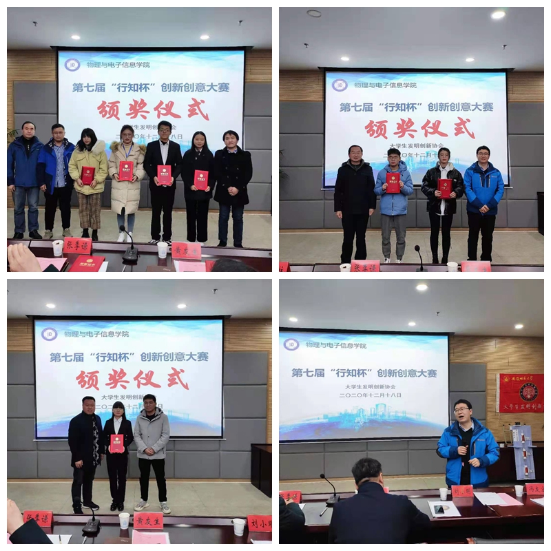 本网讯(免费足球直播app 张津源)创新百变,奇异自显。2020年12月18日晚,由免费足球直播app 团委主办,大学生发明创新协会承办的第七届“行知杯”创新创意大赛决赛于免费足球直播app 304报告厅举行。免费足球直播app 党委副书记黄友生、物理专业负责人张季谦、电子专业负责人刘小明、工科实训中心主任蔺玉柱、免费足球直播app 专业教师冯友宏、卢自宝以及协会指导教师张津源担任本次大赛评委。校学生会、校社联、协会全体理事以及近百位拥有创新创意热情的同学们到场观看比赛。