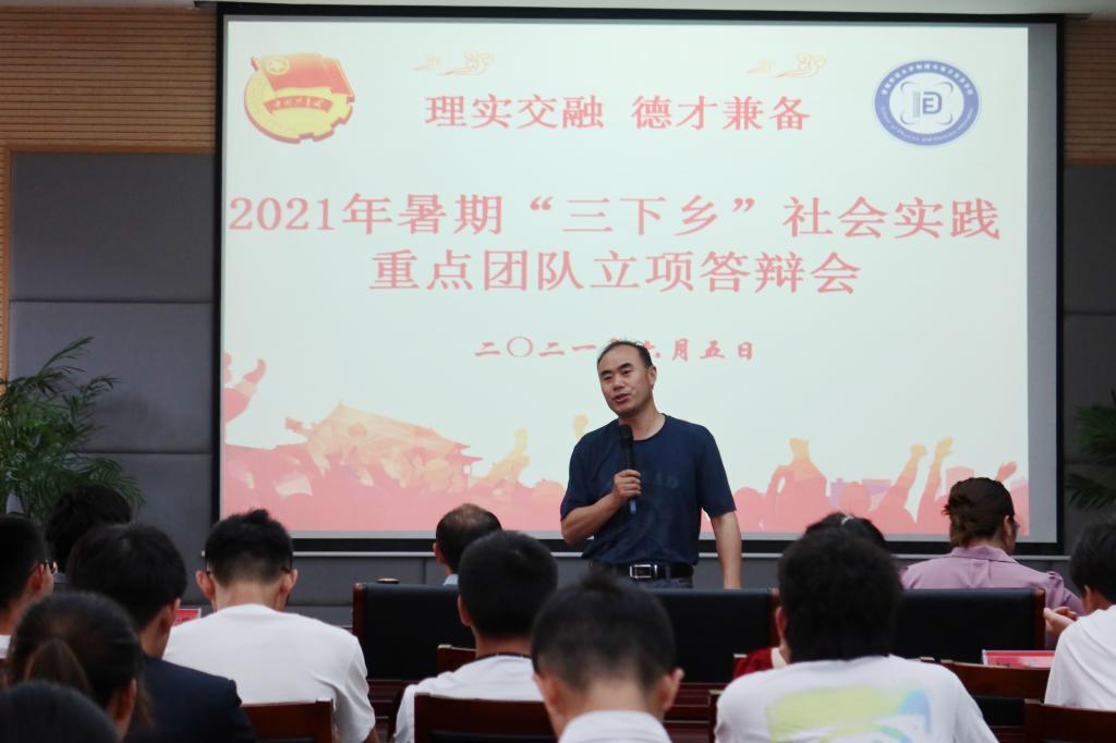 多年来暑期社会实践成效,并指出实践团队在具体实践中的努力方向。他强调,在疫情防控常态化形势下,要将专业特色融入社会实践,加强团队建设,完善实践方案,孵化实践成果。