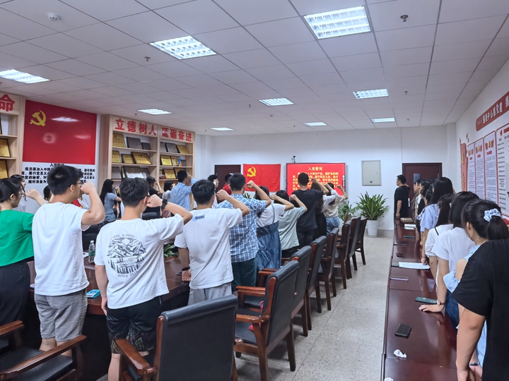 党委副书记黄友生带领毕业班党员重温入党誓词。