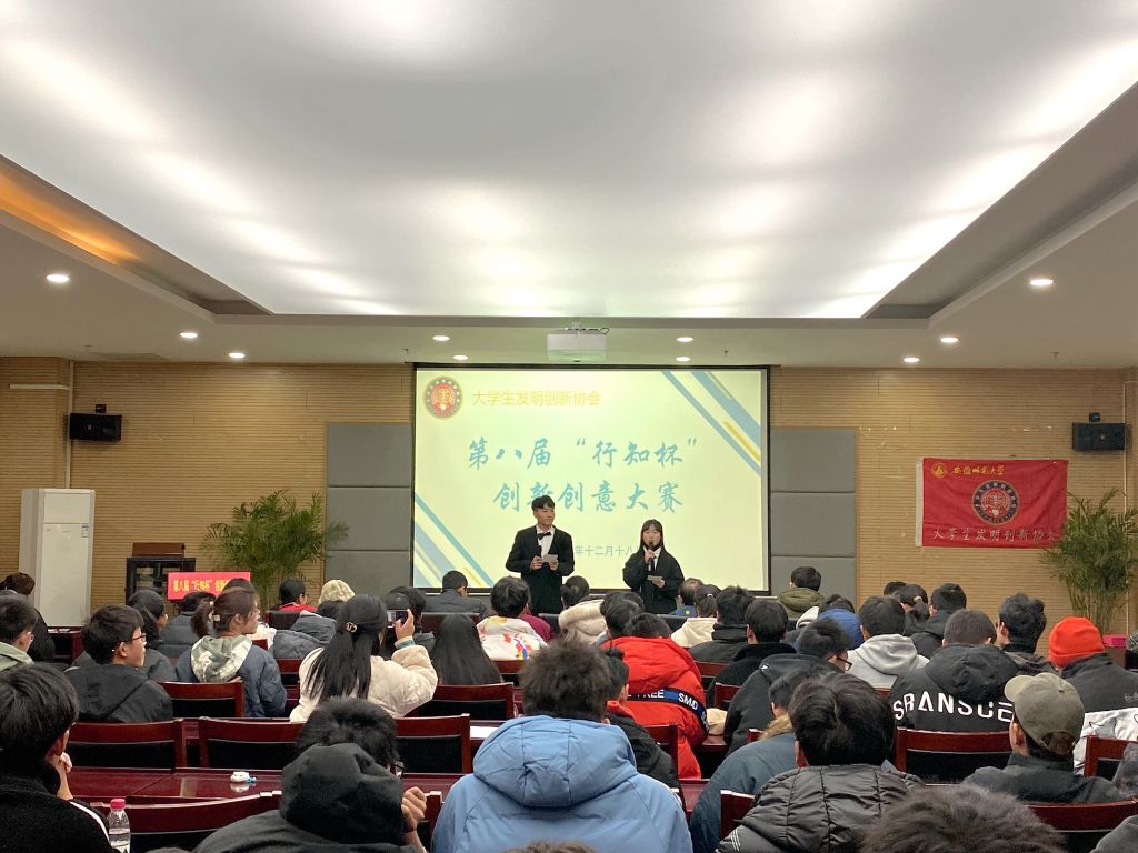 科学需要幻想,发明贵在创新。12月18日晚,由免费足球直播app 团委主办、大学生发明创新协会和大学生“核聚变”双创教育工作室承办的第八届“行知杯”创新创意大赛决赛在免费足球直播app 楼304顺利举行。免费足球直播app 党委副书记黄友生、工科实训中心主任蔺玉柱、协会指导老师曲立国、专业授课老师王晔、杨凌云、协会业务指导老师张津源参加并担任本次大赛评委,校学生会、校社联、协会全体理事以及近百位拥有创新创意热情的同学们到场观看比赛。