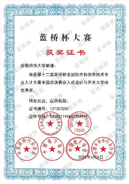 2018级电子信息工程专业本科生,现任班级组织委员,注册青年志愿者,中国自动化学会会员,曾任电子爱好者协会副会长,2022年安徽省普通高等学校优秀毕业生,现已被保送至西安电子科技大学攻读硕士研究生学位。