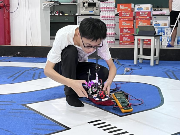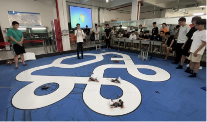 在智能车展示中,智能车设无线充电组、电磁组、摄像头四轮组、极速越野组、平衡单车组和多车编队组。首先前三组小车按照比赛顺序依次进行展示,从出库、进环出环,再到上坡下坡,最后入库,一系列动作行云流水,完成比赛,赢得了阵阵掌声。接着由难度较高的平衡单车组以及多车编队组进行展示,大家目光跟随小车出库直至完美入库,才得以如释重负,全体师生都为之喝彩。