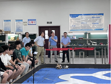 院长郑贤锋、党委副书记黄友生前往实习实训中心慰问暑期留校进行竞赛培训的学生和即将参加全国大学生智能车竞赛的学生,并且一同观看了智能车校内展示赛。