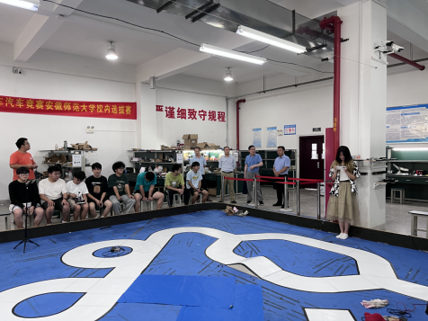 备赛期间,蔺玉柱老师一直陪伴在队员们身边。在智能汽车大赛最后一次模拟赛上,蔺老师对实践队员们的奋斗结果表示肯定,他指出,学科竞赛是彰显大学生新时代勇于创新探索的崭新面貌,是实践中贯彻理实交融,德才兼备的实操理念。各小队间要积极交流,共同协作,在竞赛中收获成长。最后他预祝各支队伍能顺利完成赛道元素,积极备战省赛。