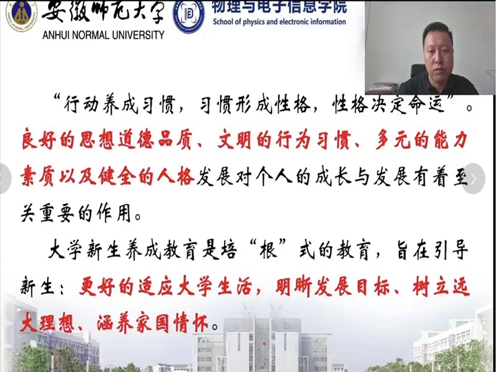 党委副书记黄友生依托新媒体平台,以“新生养成教育“为主题,提出新生养成教育的十条主线,为全体2022级新生开展了一堂别开生面的大学“先修课”。
