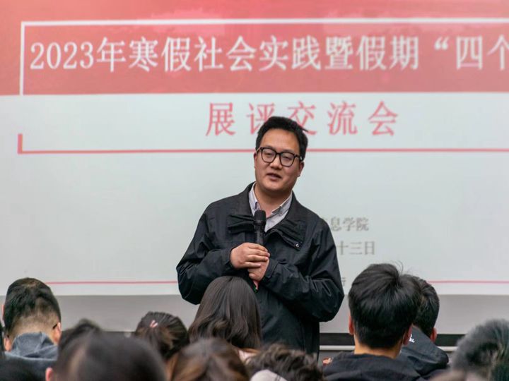 在物电楼304会议室举办主题为“学习二十大、永远跟党走、奋进新征程”的2022-2023学年“行走的思政课堂”寒假社会实践暨假期“四个一”展评交流会。物理学专业负责人、教授吕建平,物理学拔尖班负责人,教授盛晓伟、工程实训中心主任蔺玉柱,电子系专业教师,副教授王桂丽,通信系专业教师韩凌云及免费足球直播app