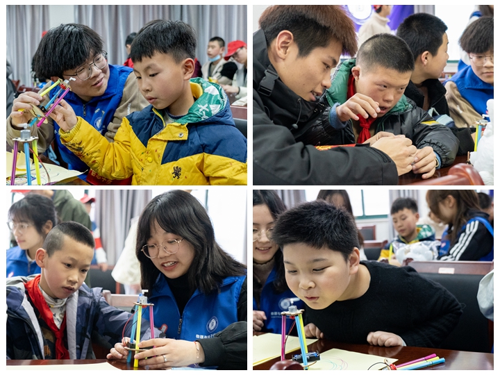 活动伊始,芜湖市聋哑职业学校副校长许瑞娟、德育主任赵玉红、团委书记胡东向志愿者们介绍了学校历史以及在校学生情况。随后志愿者们与20余名聋哑、自闭、智力障碍的儿童开展一对一的涂鸦机器人组装、科学小实验等活动。志愿者们手把手带着孩子们组装结构、安装马达,看着机器人在在纸上“舞动”,大家脸上洋溢着灿烂的笑容;在实验环节,通过志愿者的引导,他们摇身一变“小画家”,一个个粉刷匠,发挥自己的想象力,开始了充满乐趣和创意的DIY实验创作。