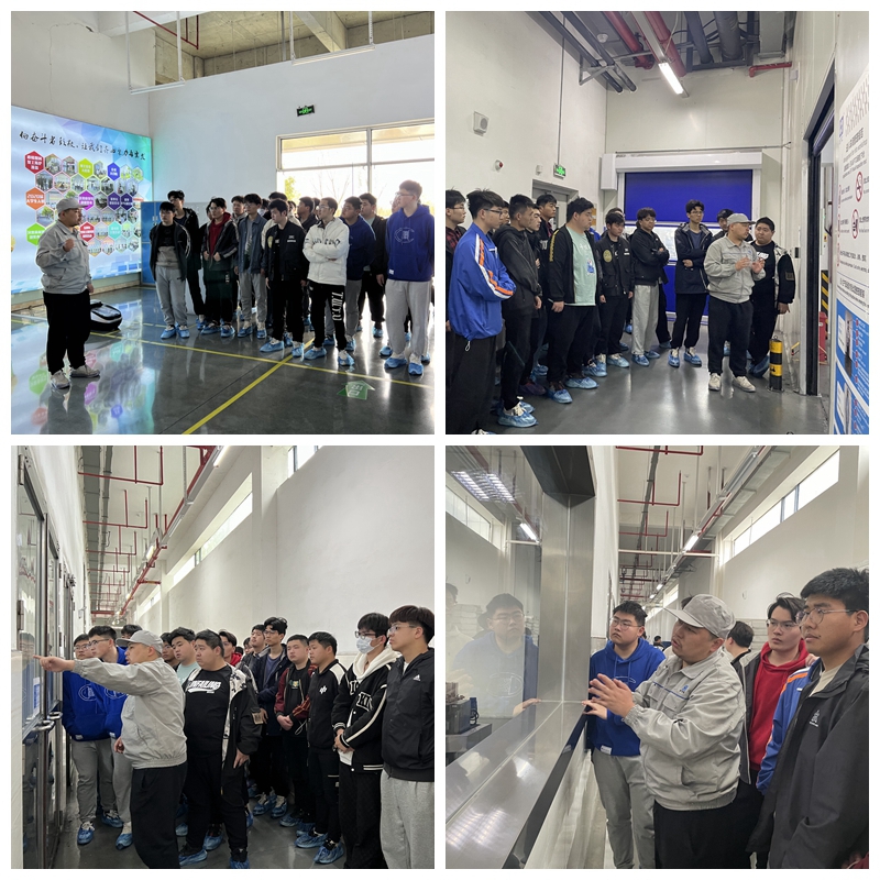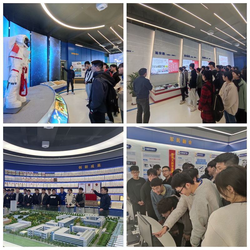 两家企业工作人员热情接待了参观学员。芜湖天弋能源科技有限公司先进技术开发部晏子聪博士带领同学们走进一线,先后参观了匀浆工艺、装配化成和锂离子电芯生产工艺装配车间。每一个展示窗口前,晏博士都驻足向大家细致讲解工艺原理和设备特点,车间内各类高精端制造机器引起了同学们的高度关注。参观过程中晏博士还与同学们介绍企业基本情况、发展历程和重要研究成果,使同学们对芜湖天弋企业前景和锂电池行业发展有了更全面的体会。在华东光电技术研究所有限公司展示厅内,宫经理陪同学生们回顾了企业三十多年创新创业之路,全面解说微波真空电子、太赫兹、微波固态电子等五大核心技术,引导大家体验智能安检与模拟机舱驾驶等,展示柜中一件件智能设施设备,让同学们“零距离”体悟到中国航天科技力量,亦对自己肩头责任使命产生更为深刻的认识。