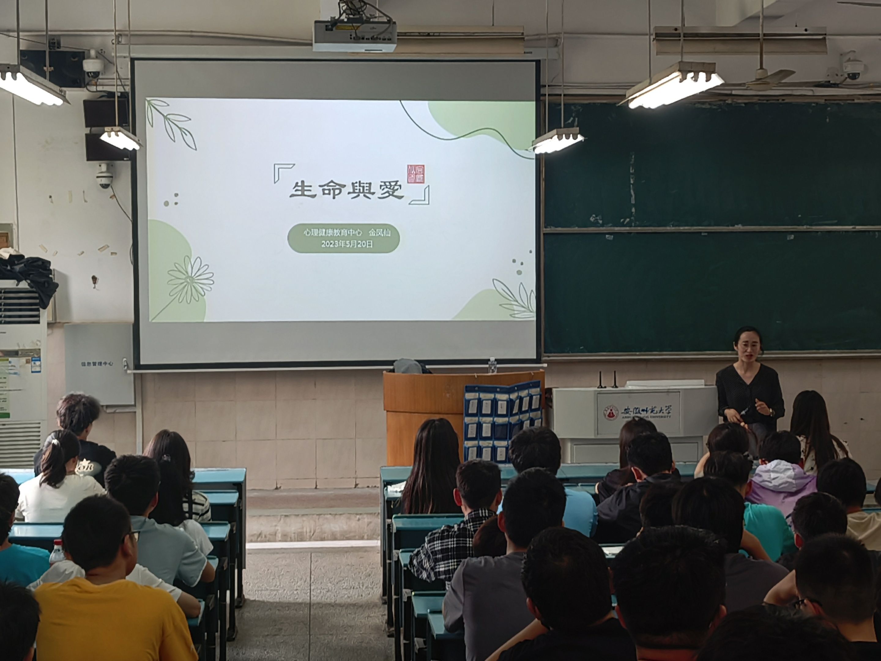 邀请学校心理健康中心心理咨询师金凤仙老师围绕“生命与爱”开展生命健康主题讲座,通过讨论互动、视频观看、情景体验等形式引导同学们珍惜、珍视、珍爱生命,理性看待“生死学”,树立正确生命观。各年级各班级辅导员积极召开“心沐阳光,青春绽放”主题班会,讲述心理健康概念、大学生常见心理健康问题以及疏导方法,营造班级阳光欢乐学习生活氛围。