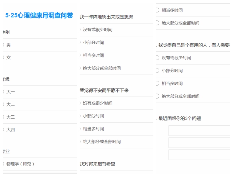 没有调查就没有发言权,没有调查就没有决策权。为助力心理健康精准育人,在活动开展之初,发展辅导站依托“问卷星”平台定制“5·25心理健康月调研问卷”并在班级发布。根据调研分析结果,免费足球直播app