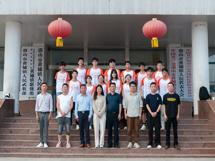 赴潜山市黄铺镇“携爱科教行,共赴千方约”千方爱心学校暑期宣传调研团队全体成员齐聚敬文图书馆门前。自2006年,安徽师范大学05级物理学本科生杨千方组建团队以来,这是安师大学生第18年走进潜山,他们冒着酷暑,走过山路,接过学长的接力棒,将科学,卫生,文化带进潜山的贫困山区。