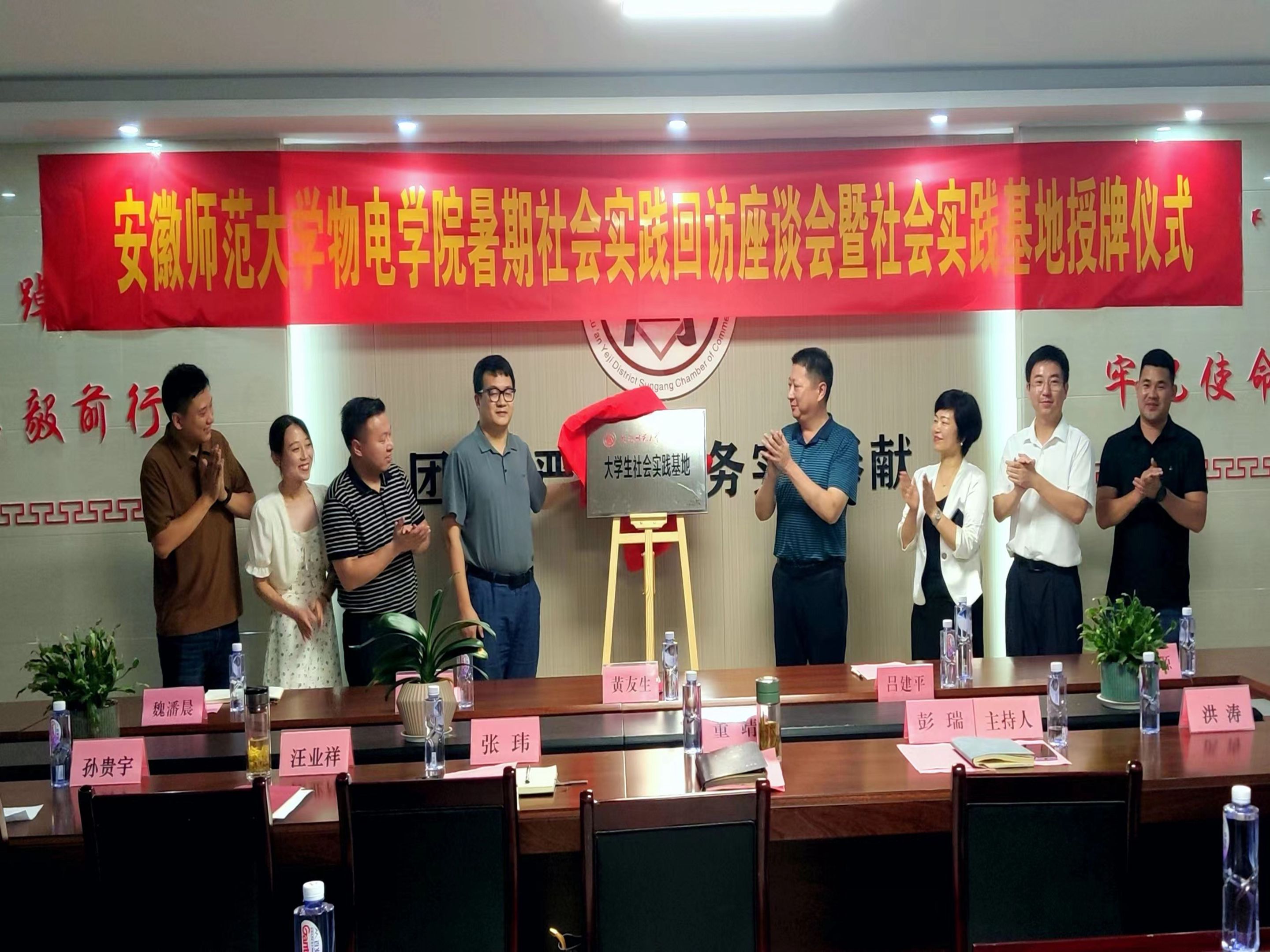 吕建平教授共同为“安徽师范大学社会实践基地”揭牌,全体与会人员合影留念。