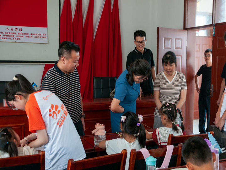 在乡村大部分都是留守儿童,暑假的作业辅导成了难题,爷爷奶奶在家带孩子,既教不好,也管不住。实践团队成员了解到这些情况之后,因地制宜,每天抽调六至七名同学,借助村里面的党群服务中心,开展作业辅导。李书记一行人首先来到了在桃铺村党群服务中心开设的学生辅导班,并与正在辅导学生作业的队员和班里的小朋友进行亲切交流。