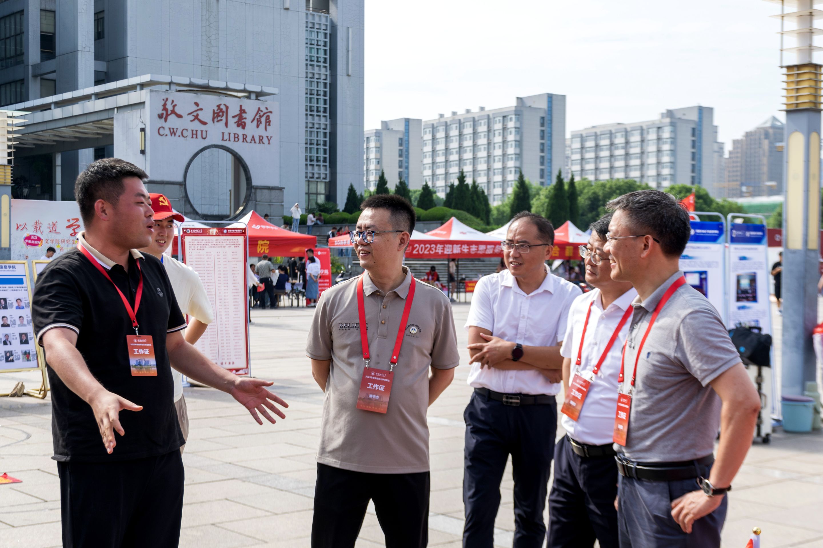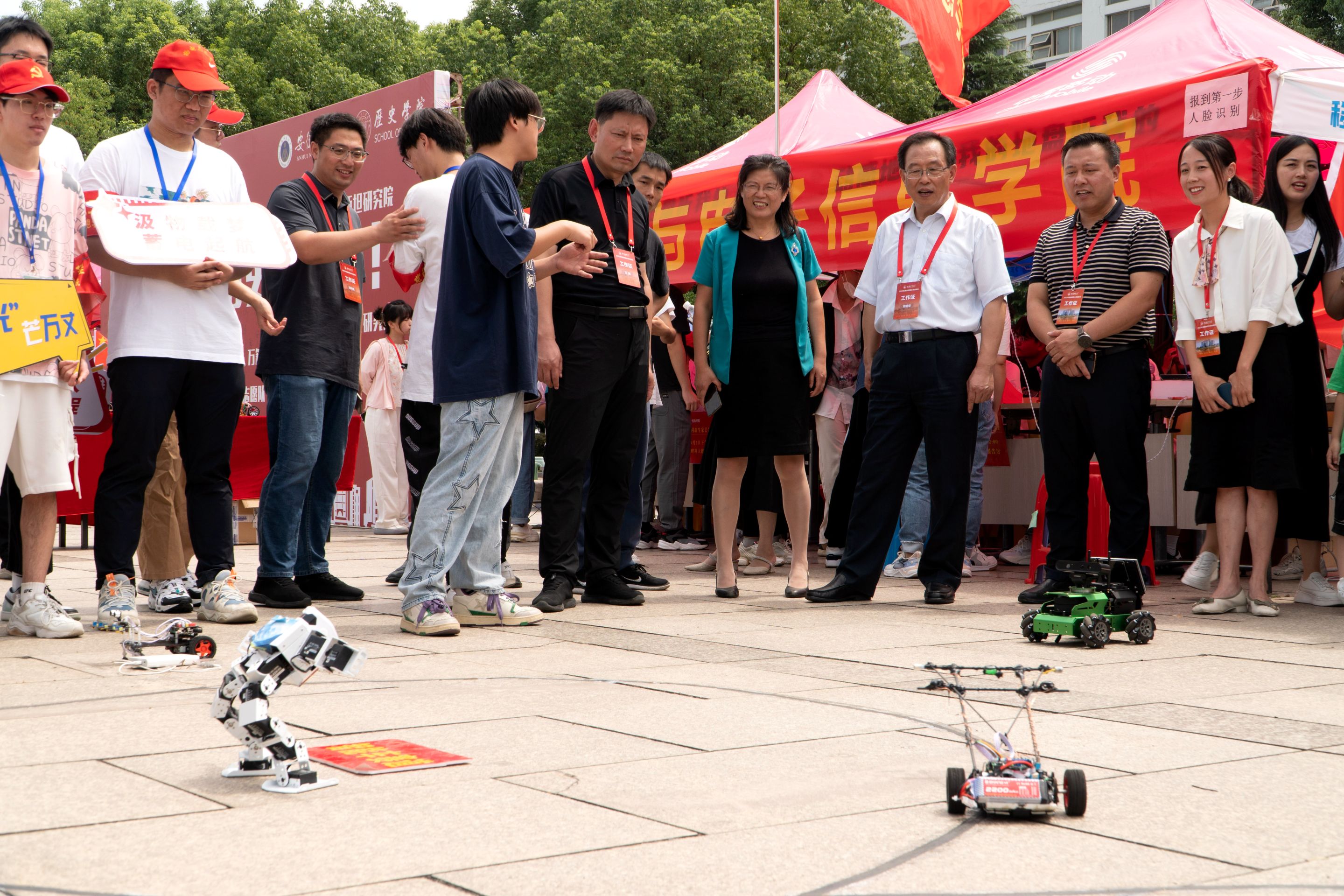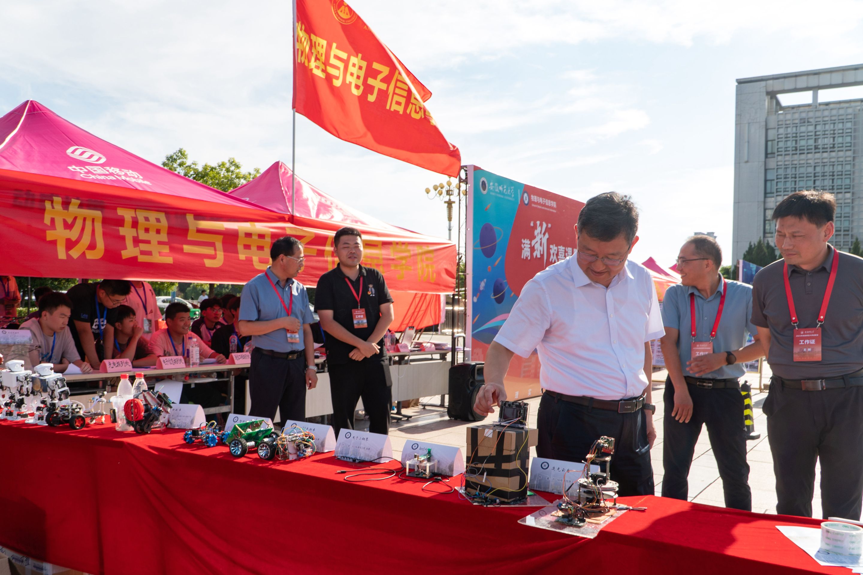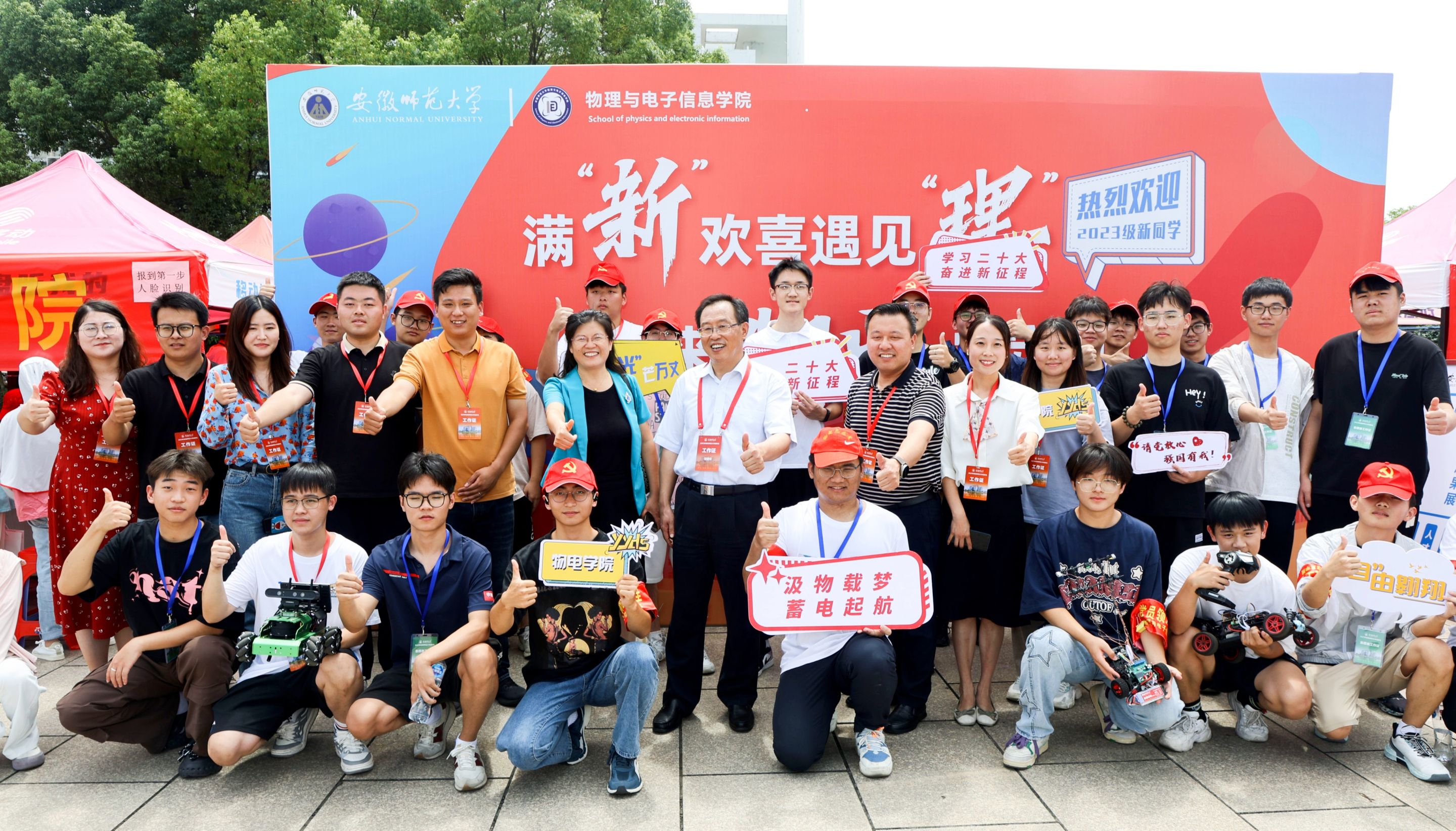 迎新现场,一列展台上展示着物电学子制作的科技作品,从工科学生研制能歌善舞的机器人、风驰电掣的智能汽车到物理师范生自制的磁感应强度探究仪、法拉第电磁感应定律演示仪、共振现象演示仪等物理教具,通过学生志愿者专业演示与讲解,让新生们在展览中感受学科魅力,对自己专业有了进一步认识。此外,免费足球直播app 学团组织简介、育人品牌项目、2023届考研光荣榜等宣传内容也在潜移默化中让专业思想教育加深加固。