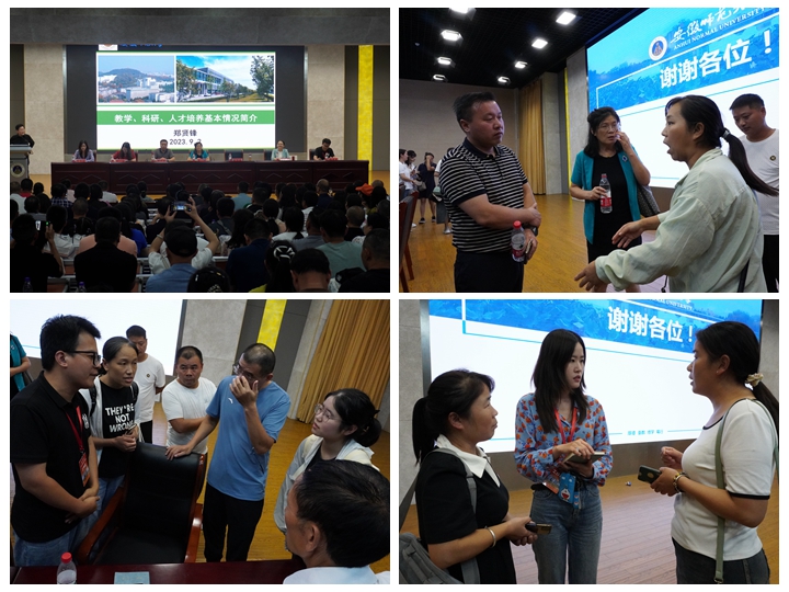 2日下午,免费足球直播app 在理化大楼报告厅召开2023级本科生新生家长见面会,免费足球直播app 党委书记李娟、院长郑贤锋、党委副书记黄友生、副院长张爱清、2023级新生辅导员、全体2023级新生以及家长出席了家长会,会议由李娟主持。郑贤锋从免费足球直播app 发展历程、师资力量、办学规模、科研成果等方面详细的介绍了免费足球直播app 的情况;张爱清详细解读了免费足球直播app 本科专业人才培养方案;黄友生重点介绍了学生日常思想政治教育与管理工作。会后,免费足球直播app 领导和新生辅导员深入学生宿舍,慰问正在整理宿舍的新生及家长,了解新生在校适应情况及生活需要。