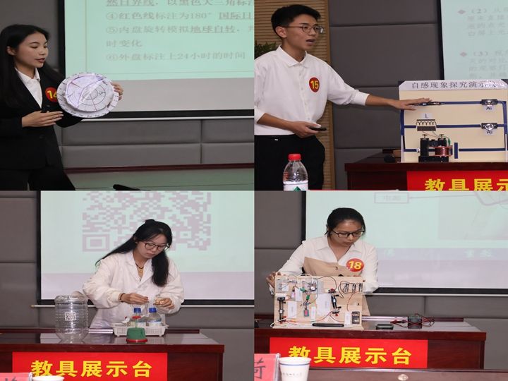本届比赛共有来自7个免费足球直播app 的202件作品参赛,经专家组评审,共有20件作品进入决赛。决赛分为PPT汇报与作品演示和现场答辩等环节,同学们将专业知识与教学应用相结合,设计并制作了集科学性与艺术性为一体的多学科教具。决赛中,选手们从主体构思、材料选择、制作方法等方面逐一介绍。免费足球直播app-最快足球比分网 陈健齐团队的光电效应演示仪,巧妙地将测量微观光电子数目转化为测量光电流的强度,利用自制光电效应演示仪带领学生探究光电效应的四个基本规律,用可操作的实验翻开了高中生近代物理中量子理论的篇章;化学与材料科学免费足球直播app 杨妍团队的铁树开花模型,将分子扩散运动这一抽象的概念用充满魔术性和观赏性的现象展示出来,发展学生宏微结合的核心素养;地理与旅游免费足球直播app 陈艺媛团队的月相变化观察模型,模拟了日月地相对关系,以地球观察视角帮助学生直观感受月相变化;生命科学免费足球直播app 郭子晗团队通过立体、直观的DNA二级结构教具帮助学生真实体会三种常见DNA二级结构:A-DNA、B-DNA、Z-DNA之间的区别,真切地认识到DNA的二级结构基础;美术免费足球直播app 王甜甜团队展示制作不同颜色、造型、材质和装饰的精美灯饰,让学生直观的探究学习灯饰的造型、装饰手法和影响灯光的因素;教育科学免费足球直播app 卫茹萍团队以超轻黏土为主要材料,由底板和可拆卸部件组成教具,以立体形态展现民族分布情况让学生更加直观地感受我国各民族的区域分布特点以及民族服饰特色。参赛的作品多种多样,各团队结合PPT详细讲解了教具的制作过程,并通过现场演示直观地展示了教具的教学用途,赢得了在场老师和同学们的阵阵喝彩。