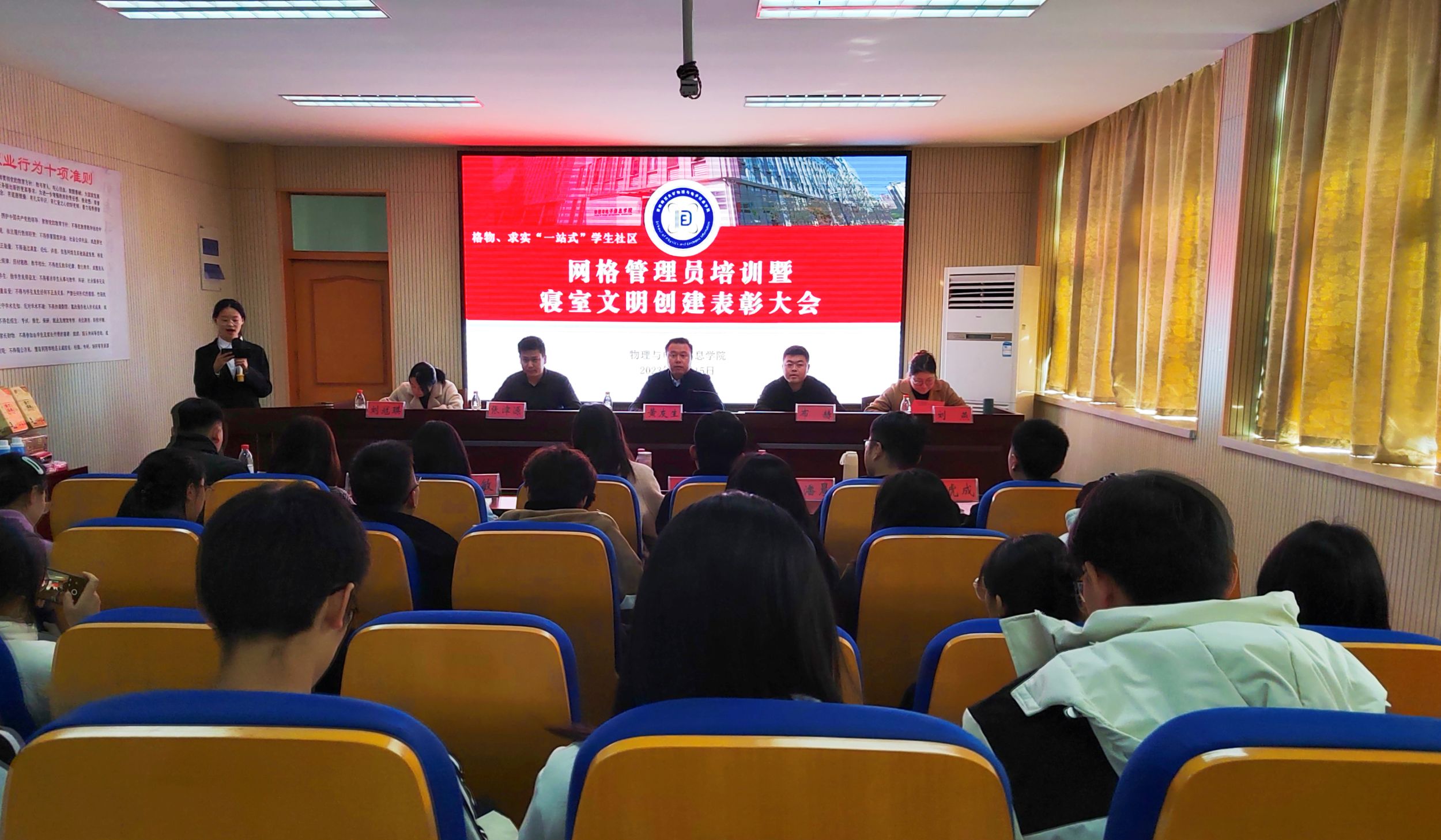 在学苑南楼三楼报告厅举办“一站式”学生社区网格员培训暨寝室文明创建表彰大会。免费足球直播app