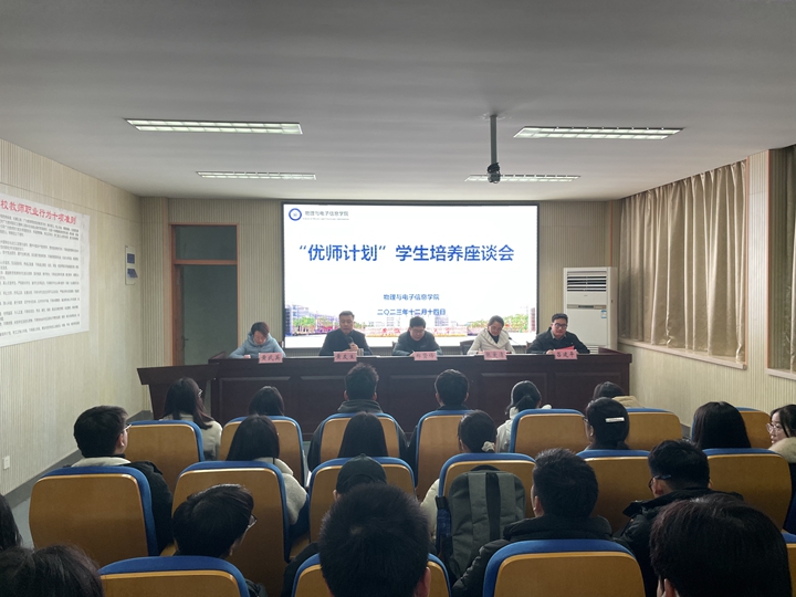 为深入学习弘扬教育家精神,积极落实学校基础教育振兴行动计划和大学生护航行动计划,深入了解“优师计划”学生发展需求,切实培养好“地方优师专项计划”学生,努力实现“一个都不要掉队”的工作目标。近日,免费足球直播app 组织召开了“优师计划”学生培养座谈会。免费足球直播app 院长郑贤锋、院党委副书记黄友生、物理学专业负责人吕建平、2022级“优师计划”班班主任黄武英,“优师计划”辅导员刘冠琪、刘敏、邹孝龙,2021级、2022级、2023级物理学“优师计划”全体学生参会。会议由免费足球直播app 教学副院长张爱清主持。