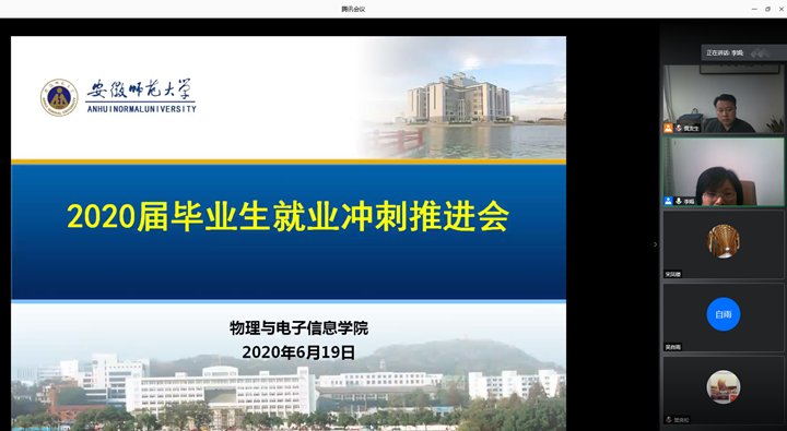 本网讯(免费足球直播app 宋凤楼)为进一步做好2020届毕业生就业帮扶和服务,6月19日上午,免费足球直播app 召开未就业毕业生线上动员指导会。免费足球直播app 党委书记李娟,副书记黄友生,毕业班辅导员汪光麒、米佳佳、宋凤楼和2020届未就业毕业生参加会议,会议由黄友生主持。