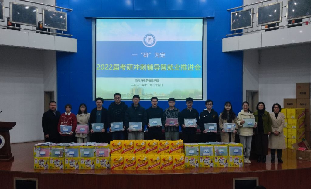 张爱清作冲刺动员讲话,她以过往学生考研案例为切入点,从正反两个角度剖析考研的重要性,并就数学和专业课最后一个月的复习方法给予指导。黄友生勉励全体学生要积极备考,不能想“二战”,不能当“逃兵”,切不可“逃避式崩溃”、“习惯性倒退”;要坚持“两手抓”,考研就业同兼顾,把握当前就业黄金期,积极参加应聘,争取一颗“定心丸”。李娟在总结讲话希望全体毕业班学生要有恒心,不能半途而废,走好考研“最后一公里”,要有信心、充分相信自己的实力,要有爱心,与“研”友相互扶持共同进步,要有细心,要推前准备考研用品,要调整好身心状态。会后,全体领导老师为学生代表颁发考研慰问品并合影留念。