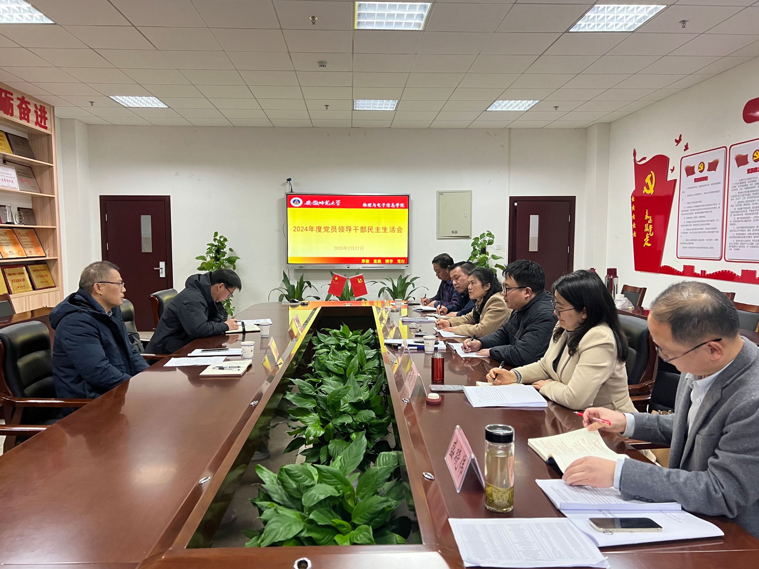 党委领导班子在物理楼3楼党员活动室召开2024年度民主生活会。校纪委办公室主任马广见、校纪委办公室纪检监察员李成新到会指导。会议由免费足球直播app