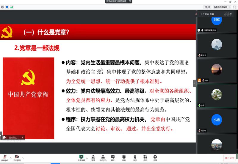 领导班子成员、党委委员、纪委委员、支部书记通过线上的方式参加学习会。