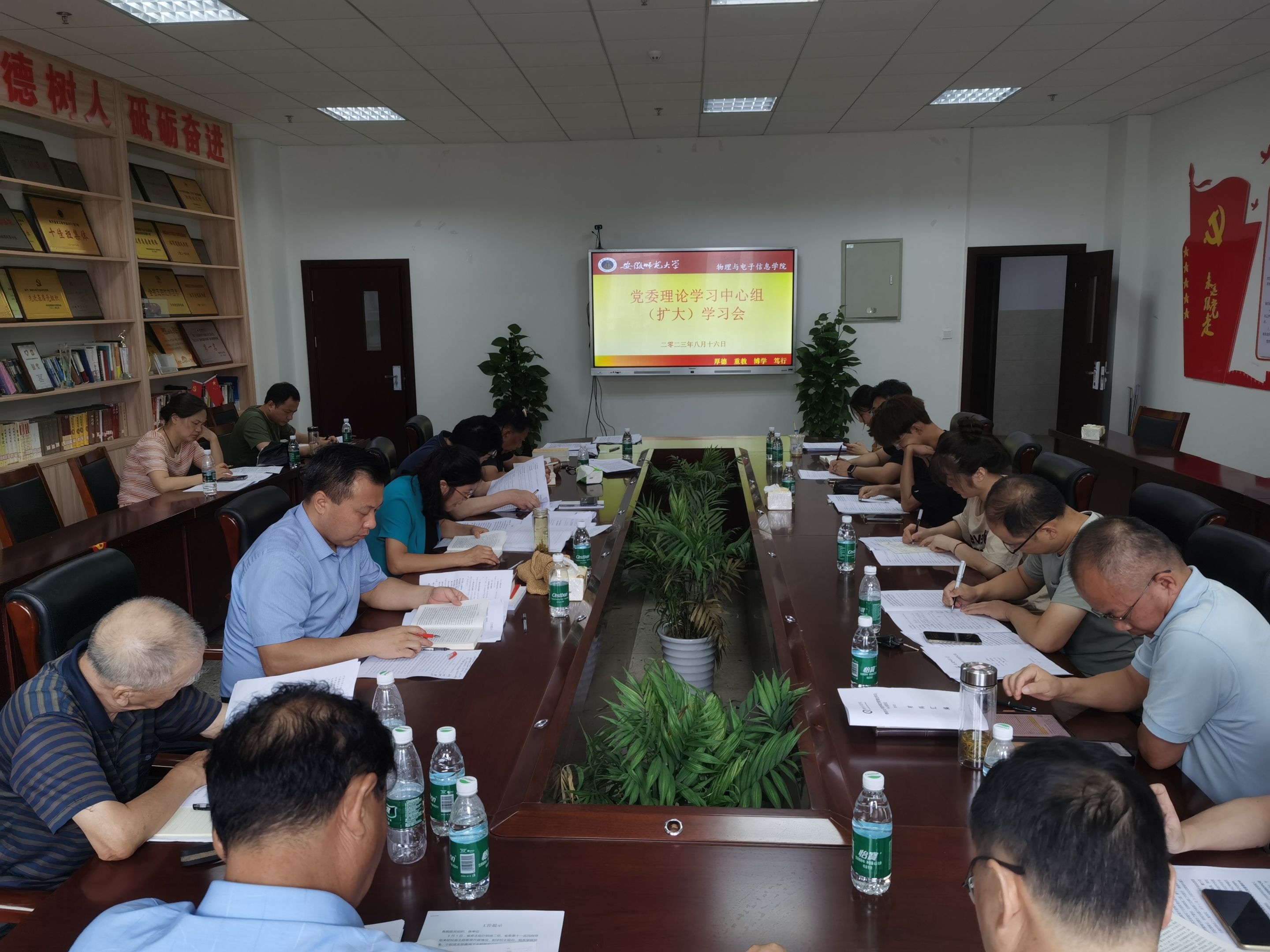 李娟领学了《论党的自我革命》篇目“坚定不移全面从严治党、深入推进新时代党的建设新的伟大工程”,院党委副书记黄友生领学了《论党的自我革命》篇目“新时代党的建设和党的组织路线”和“ 时刻保持解决大党独有难题的清醒和坚定,把党的伟大自我革命进行到底”,解读了《关于进一步加强对论坛、讲坛、讲座、年会、报告会、研讨会等阵地管理的实施细则》、《安徽师范大学对外宣传工作管理办法》。会上,领导班子成员分别围绕“习近平总书记关于党的建设的重要思想”“习近平总书记在四川考察讲话精神”“树立正确的政绩观”等专题作研讨发言。