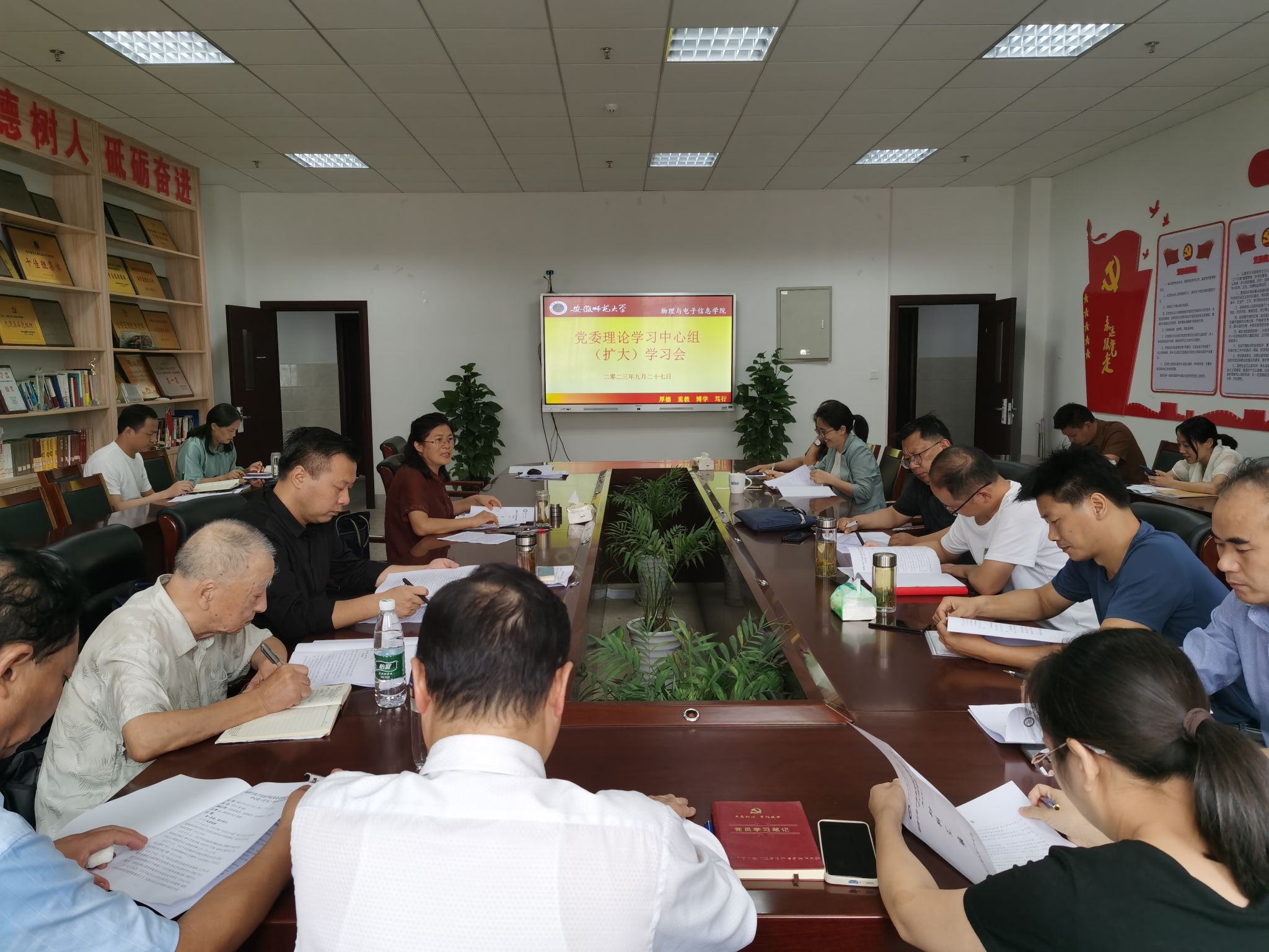 会议集中观看学习了习近平总书记给“科学与中国”院士专家代表回信、给安徽省潜山野寨中学新考取军校的同学们回信、给中国航发黎明发动机装配厂“李志强班”职工回信、给东北大学全体师生回信的新闻视频,集中观看学习了习近平总书记致信全国优秀教师代表时的重要讲话精神新闻视频,集中观看学习了省委书记韩俊在2023年安徽网络文明大会上的重要批示精神的新闻视频。