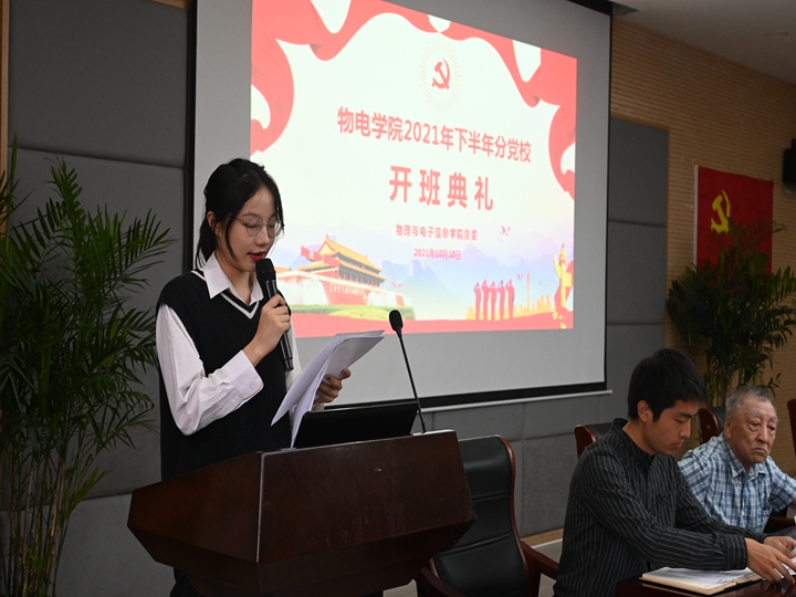 本网讯(免费足球直播app 邹孝龙)10月10日上午,免费足球直播app 2021年下半年分党校培训班开班典礼在物理楼304会议室召开。院党委书记、分党校校长李娟,院党委副书记、分党校副校长黄友生,院关工委副主任、分党校指导老师陶绪德,培训班副班主任邹孝龙参加开班典礼。典礼由培训班班主任曹阳主持。