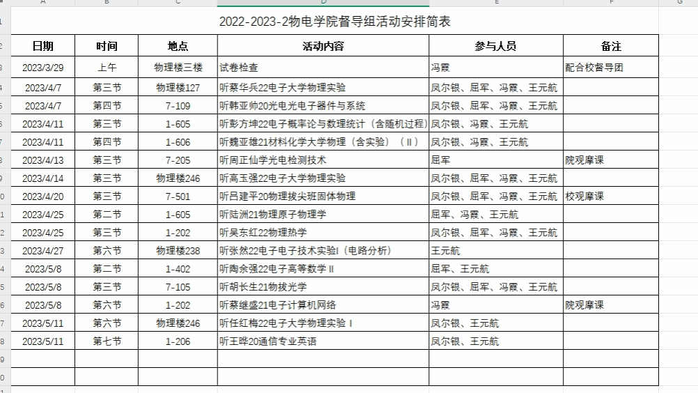 免费足球直播app 2022-2023-2学期督导组听课安排表